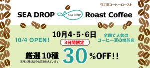 2024年10月4日 オープン! 2024年9月26日 最終更新日時 : 2024年9月30日 Roast 横浜市金沢区富岡東にコーヒー豆の焙煎専門店「SEA DROP Roast Coffee」をオープンいたします。皆さまに心と身体を癒す、美味しいと思っていただけるコーヒーを提供してまいりますので、ぜひお立ち寄りください。